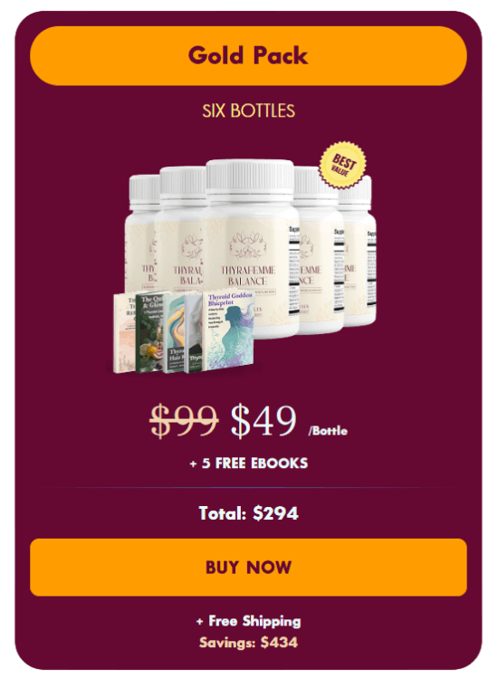 At this moment you can order Thyrafemme supplement for 72% OFF + FREE Shipping. This is a Limited-Time Offer and it won’t be available for long.